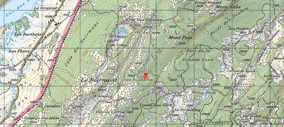 Le méandre sur lequel se termine actuellement le gouffre à -120 a déjà fait l’objet de plusieurs tirs afin d’y avancer. À force de chercher le passage le plus facile, nous avons fini contre le plafond descendant , et essayons maintenant de suivre le méandre en tirant vers le bas. Encore quelques années et on trouvera un puits ! Vive la spéléo !