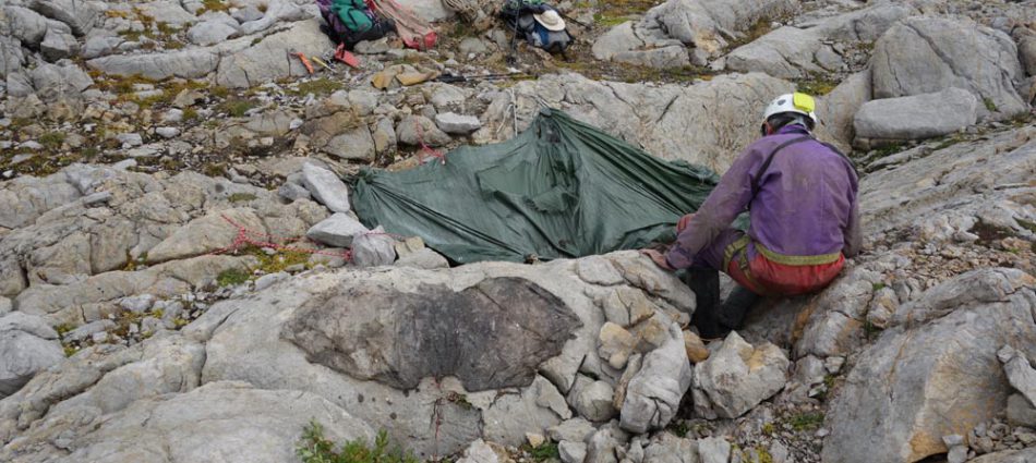 La neige au bas du puits d’entrée ayant fondu, après avoir bâché celui-ci pendant dix ans, nous avons trouvé les restes d’une nouvelle espèce de chauve-souris au fond du puits: ballonus héliumum. De très bon augure pour la suite des explorations!