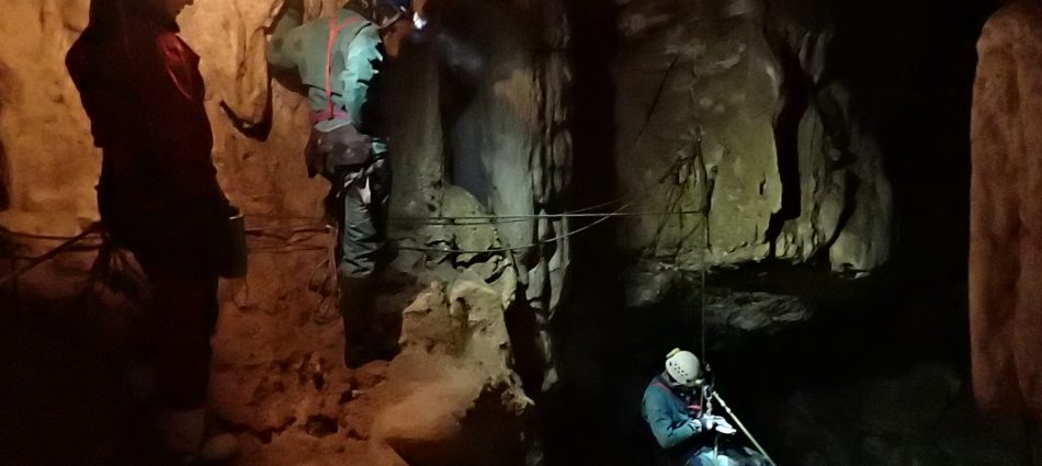 Toujours pas aidé par la météo, l’option d’aller patauger à Château Laroche est remplacée par une initiation au Creux d’Entier en mode expert avec Amandine, Arno et Manu. Un grand bravo à Christelle qui semble avoir fait ça toute sa vie !